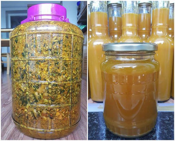 Khi dùng bạn cần lấy muôi múc một ít nước cốt, rót vào chai nhỏ hơn để tiện sử dụng hơn mỗi ngày. Phần hũ lớn còn lại, vẫn để thế ngâm tiếp.